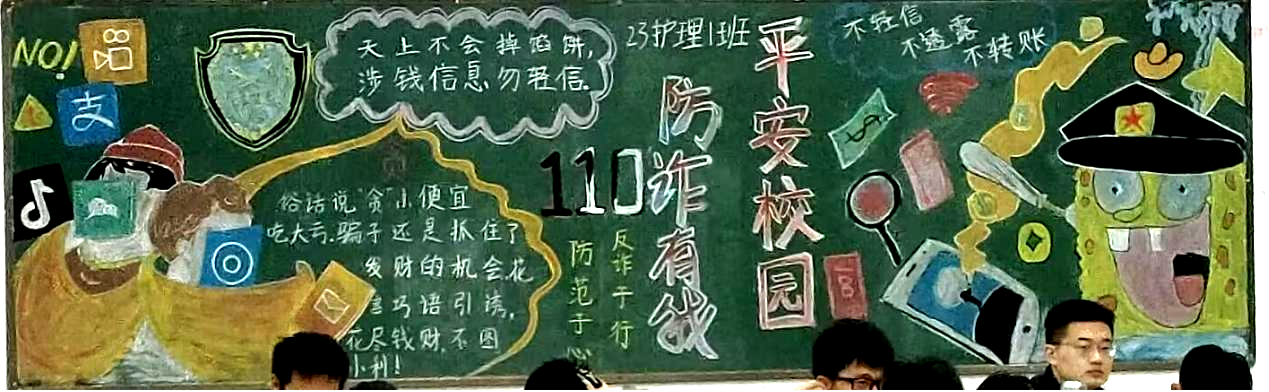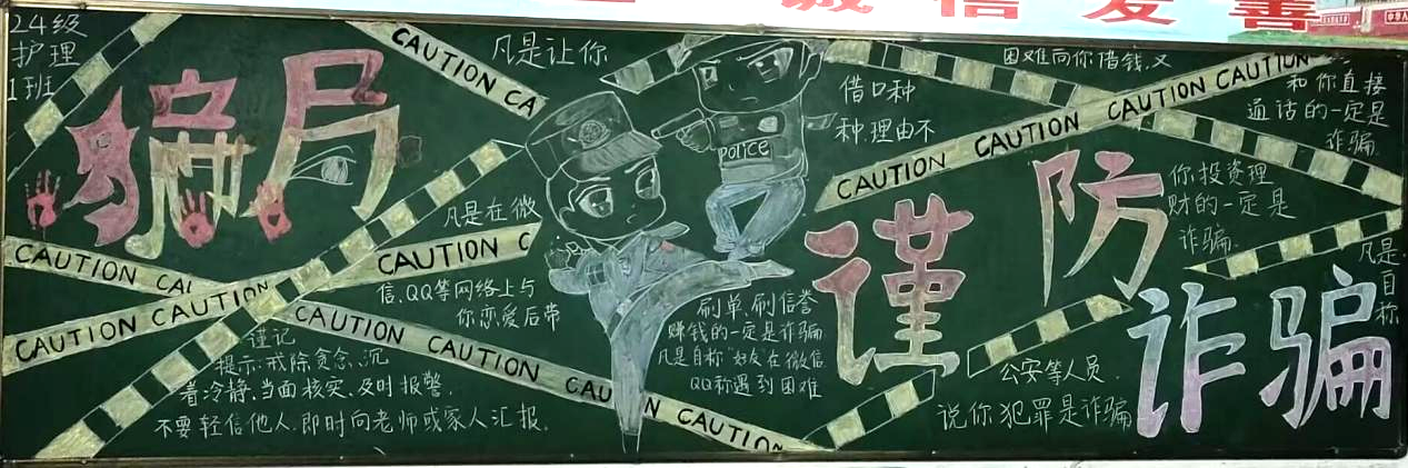 本次黑板报活动中,各班级同学积极参与,紧扣本次“反诈”主题,通过多种元素、绘画材料呈现出精彩的黑板报作品。展现了同学们防范诈骗的意识和方法。