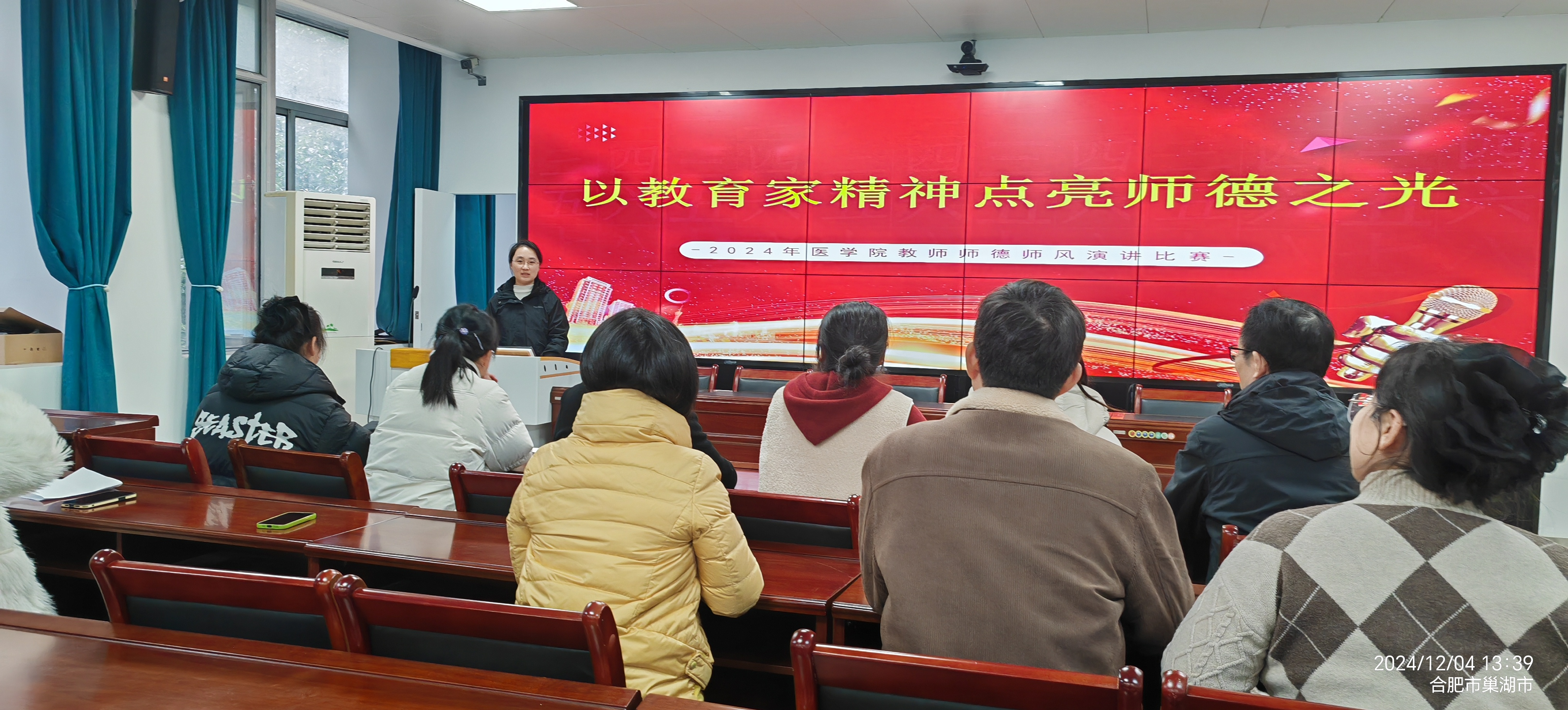 为牢记为党育人、为国育才的初心使命,树立“躬耕教坛、强国有我”的志向和抱负,大力弘扬心有大我、言为士则、启智润心、勤学笃行、乐教爱生、胸怀天下的教育家精神,bw必威西汉姆联官方网站积极响应校工会关于举办 “以教育家精神点亮师德之光”演讲比赛活动要求,12月4日,在医学楼216会议室举行“以教育家精神点亮师德之光”为主题的师德师风演讲比赛。