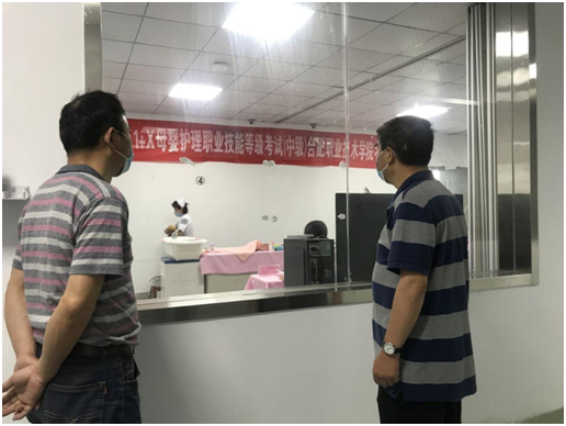 本次考试由教育部认证的第三方机构——山东阳光大姐服务有限公司考评站与我院共同负责实施。考试分为理论和技能操作两部分,理论考试为人机对话,在继续教育楼进行,全程录频监控。技能考核为口述和操作,考核项目包括产妇月子餐制作、宝宝被动操、婴儿洗澡。