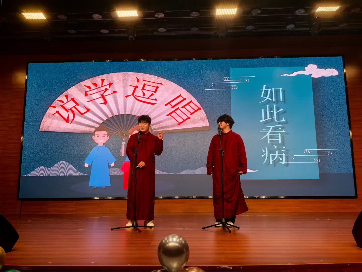 晚会在《向快乐出发》轻快的旋律中拉开序幕,同学们载歌载舞,以饱满的热情和真挚的情感诠释了青春的思考与追求。整场晚会不仅有歌曲、弹唱、舞蹈等具有流行元素的表演,同时还有戏曲、相声、小品等传统艺术形式,表演者们认真准备、倾心尽力,以最好的状态迎接舞台,为全场观众展现了一场视觉与听觉的盛宴。