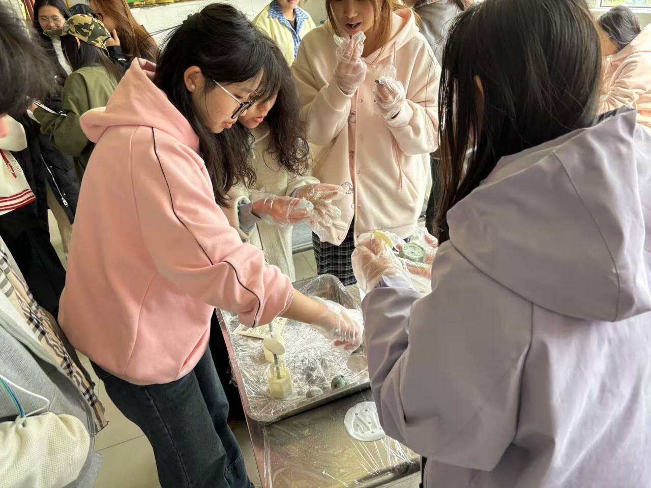 山糕寄清明,青团承技艺。在丁香园二楼,同学们体验了一场“舌尖上的清明”。大家在食堂师傅的悉心指导下,将新鲜的艾草汁融入糯米粉,包裹着红豆、山药等馅料,亲手制作出软糯香甜的山药糕。这不仅是一次味蕾的盛宴,更是一次对传统文化的传承与体验。