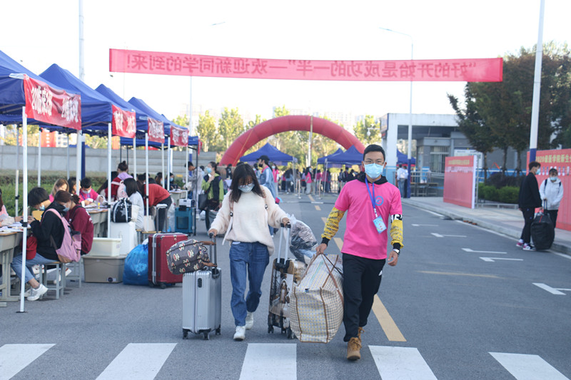 做好错峰分流,优化报到流程。根据《安徽省教育厅关于在常态化疫情防控下做好各级各类学校2020年秋季开学工作的通知》及学校要求,鉴于学生家长不进校园,为保证1000余名新生一天内报到完毕,bw必威西汉姆联官方网站教师队伍与学生志愿者们6:40准时到岗,在鼓山校区北侧东门迎新点等候新生报到。新生陆续抵达后,从大门4个通道有序完成安康码核验、录取通知书核对、测温、消毒、入校、报到、入住宿舍。整个过程在志愿者帮助下有序进行,避免来回穿梭。bw必威西汉姆联官方网站现场报到点、绿色通道等处都井然有序。