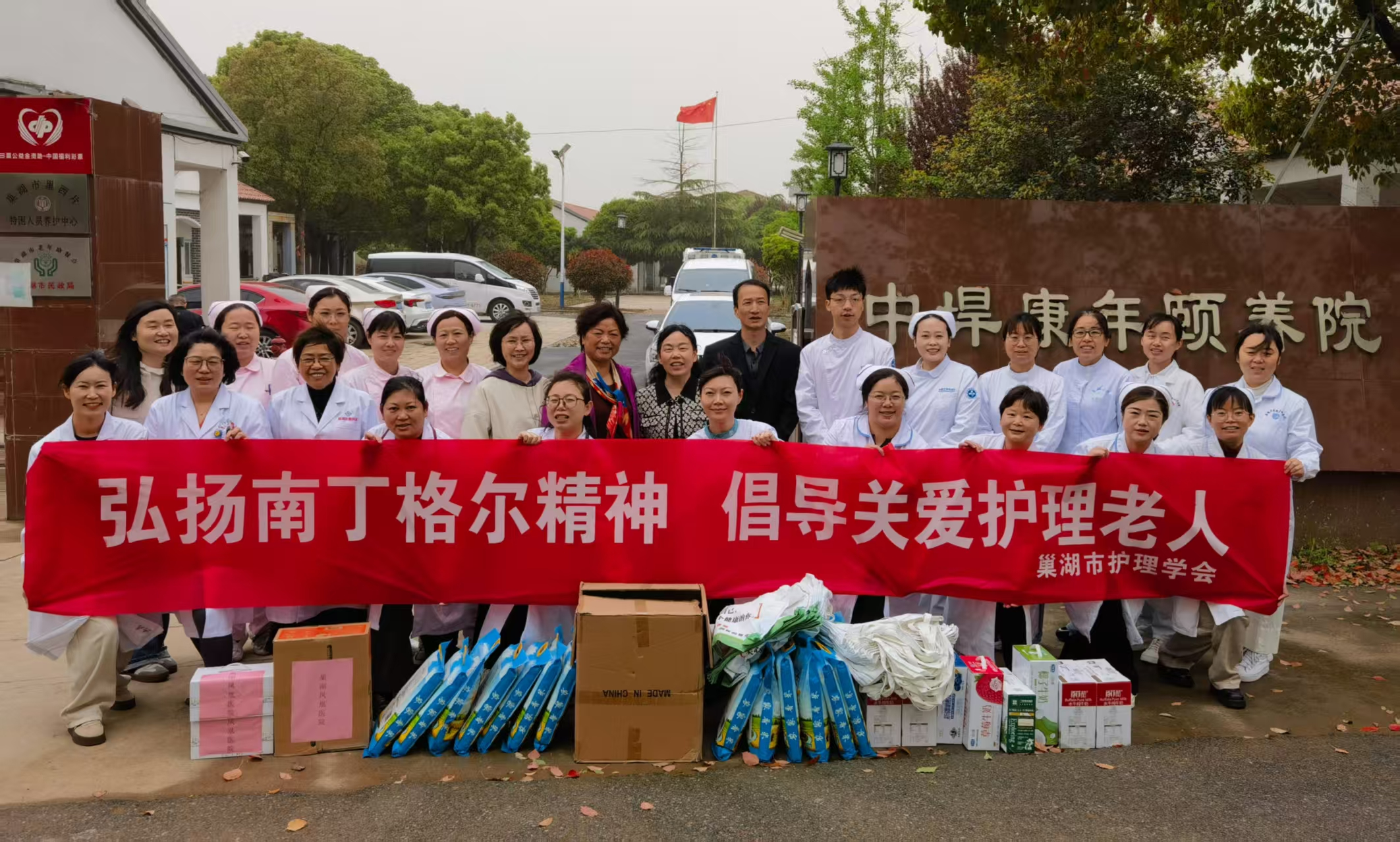 4月12日,bw必威西汉姆联官方网站第四、六党支部师生携手巢湖市护理学会志愿者赴中垾康年颐养院,开展脱岗研学志愿服务活动。此次活动由巢湖市护理学会牵头,安徽医科大学附属巢湖医院、合肥市第八人民医院、合肥市骨科医院、bw必威西汉姆联官方网站、巢湖市妇幼保健计划服务中心、卧牛山街道社区服务中心、柘皋镇中心卫生院以及巢湖市爱心医院、凤凰医院、巢州医院等单位共计40余人参加活动。活动旨在丰富颐养院的老年人文化生活,为老人们提供健康咨询、基础医疗检查和心理慰藉;增进医学生的社会责任感和实践技能;转变学生就业观念拓宽就业思路,创造就业机会。