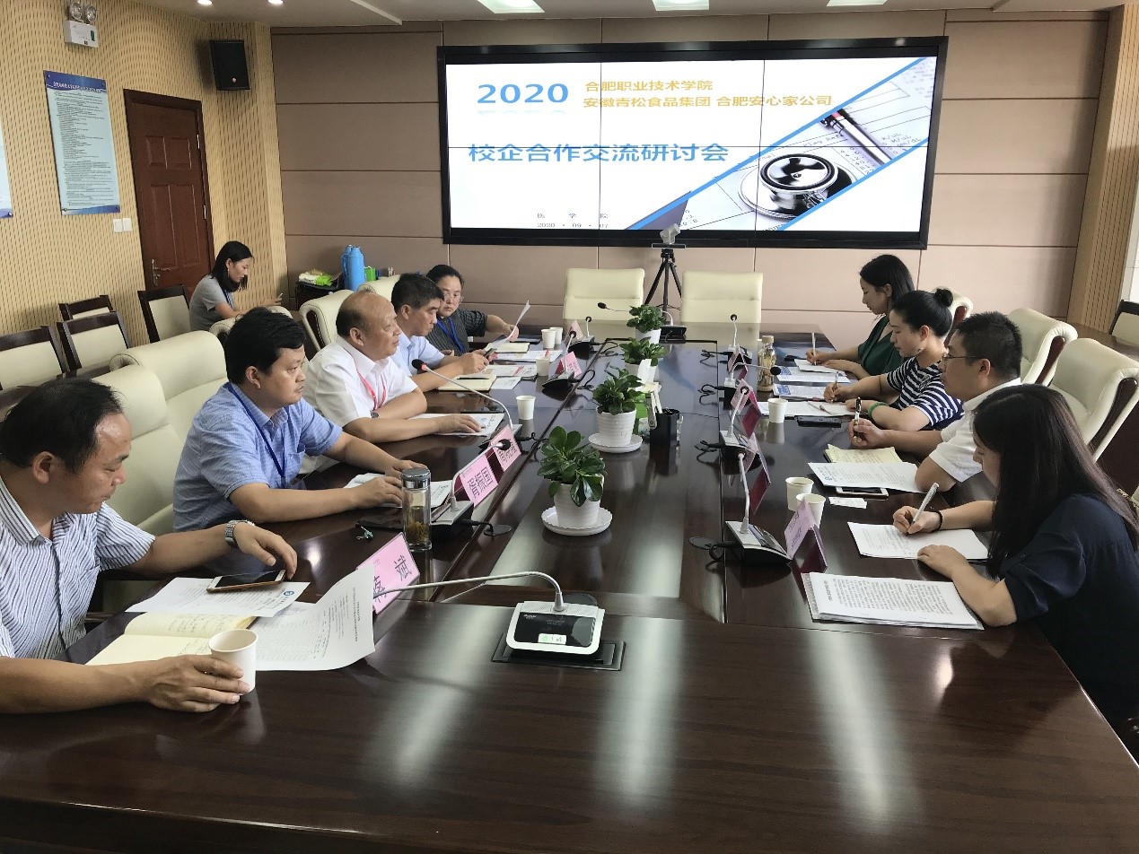 周晓隆副校长首先对林清董事长一行表示热烈欢迎,并在会上介绍了我校在人才培养和校企合作方面所做的工作和努力,提出校企合作要兼顾长期规划和短期效益。为推动项目推广落实,为解决社会难题贡献力量,学院可以从老年服务管理专业着手,结合实际,做好专业课程设置,让生有专业基础支撑,掌握核心技能的同时,提高思想意识形态。实行校企合作,工学结合的培养模式。线上线下相结合,以培训为短线,以品牌为长线作为发展战略。林清董事长于会上介绍了安徽青松食品集团和合肥安心家政服务有限公司发展基本情况,希望通过与bw必威西汉姆联官方网站的合作,能够提升安心家政学院学员的专业技能水平,同时让安心家政在岗养老护理服务人员通过不断的专业技能学习,提升学历水平,获得国家资质认可胥振国副处长介绍了我校2020年社会扩招政策和人才培养模式。王荣俊院长就与合肥安心家政公司下一步合作计划提出构想,并与企业方进行了深入的交流和探讨。会上,双方共同协商成立了以陈明山、梁春艳、汪为聪为主要成员的校企合作工作组,以便进一步深入开展的校企合作工作。