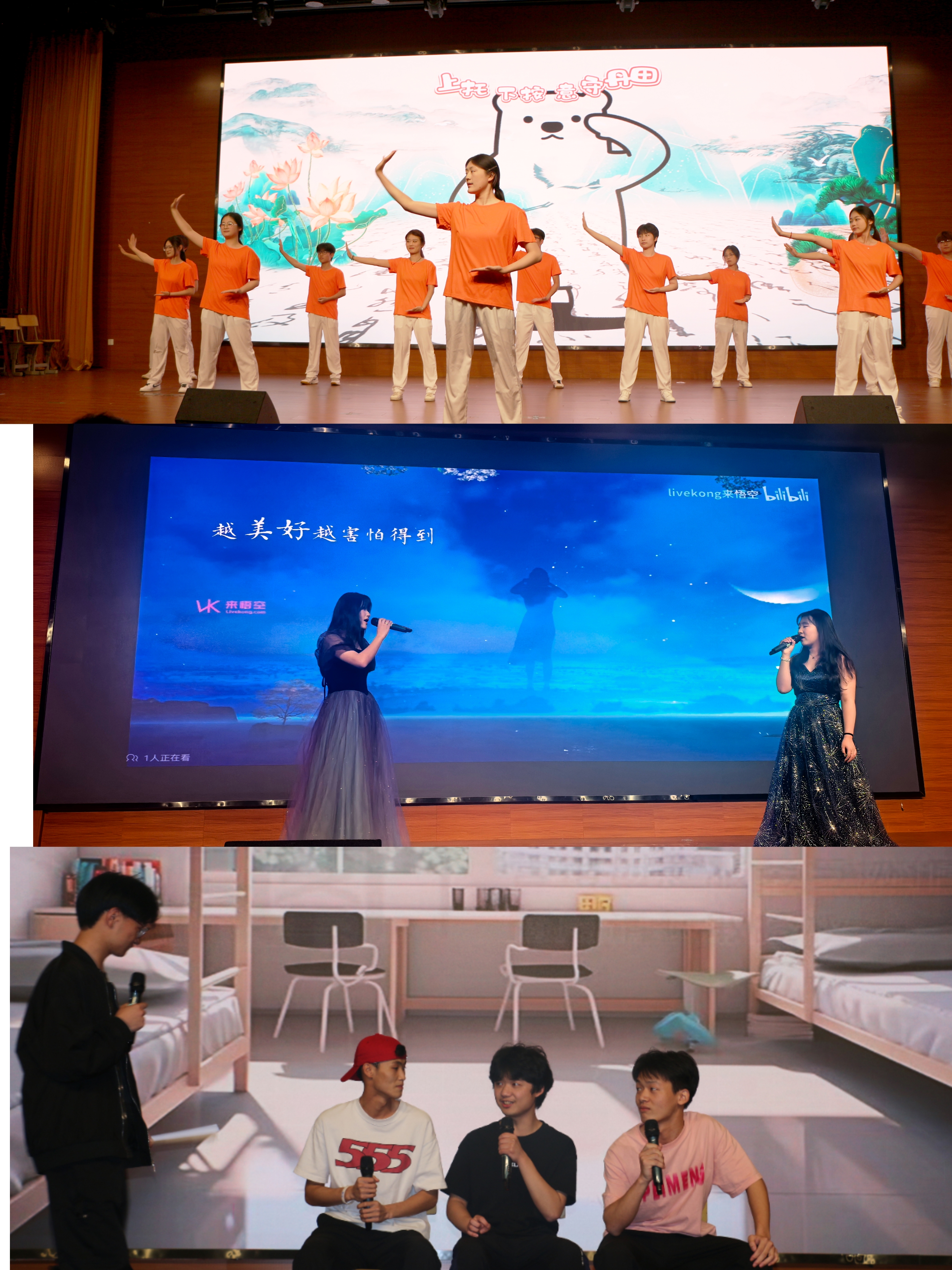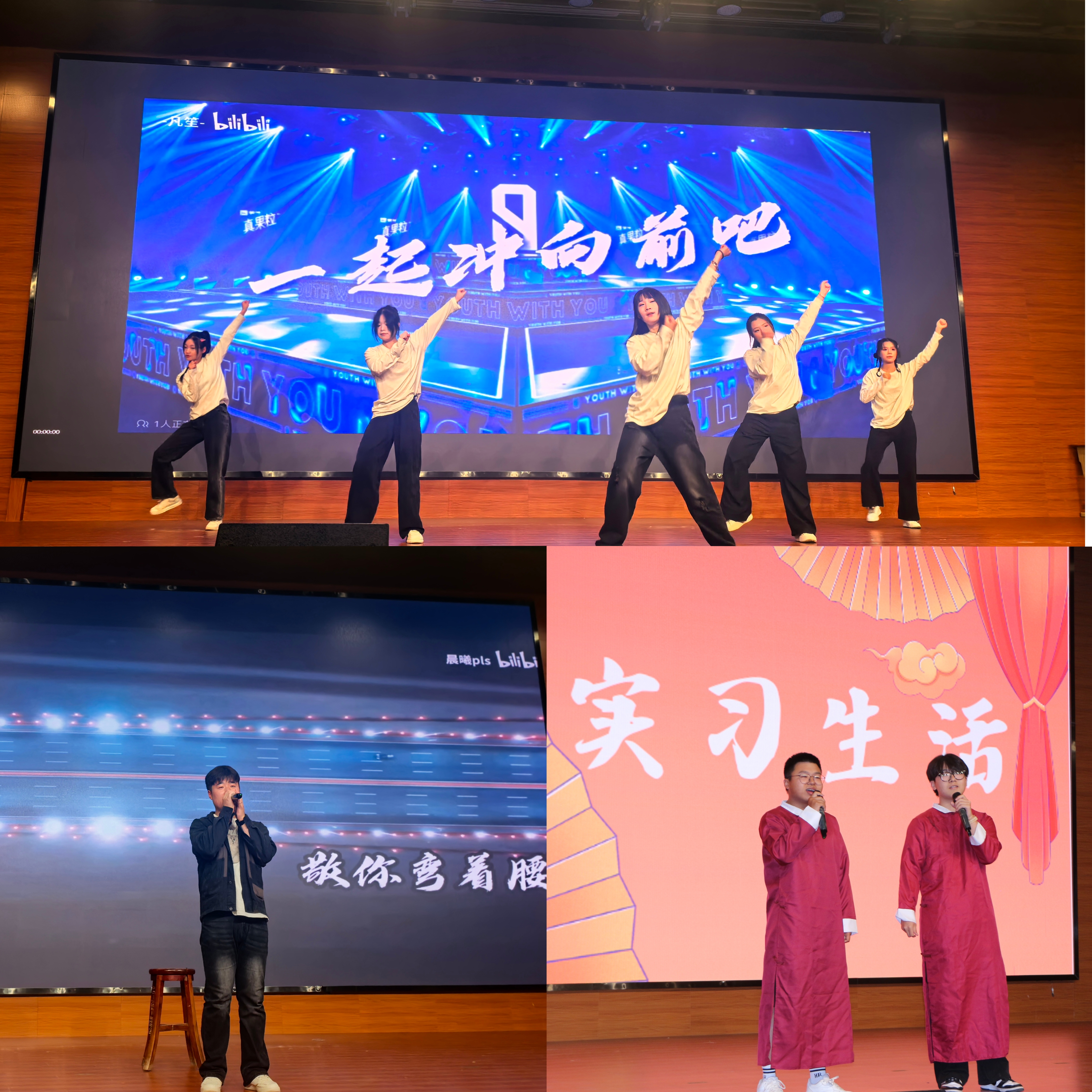 本场晚会共分为“青春作序,梦想成章”、“杏林初探,医路始航”、“扬鞭奋发,筑梦前程”三大篇章,分别展现了青年学子的青春风采、对医学的探索和对未来的美好憧憬。伴随着动感十足的《健康到到令》,晚会正式拉开帷幕,欢快的节奏瞬间点燃了现场气氛。随后,一系列精心准备的节目轮番上演,精彩纷呈,情景剧《i人错过》以轻松诙谐的方式,讲述了当代大学生在校园生活中的趣事,引发了同学们的共鸣;相声《实习生活》则以幽默风趣的语言,生动展现了实习生们在临床一线的酸甜苦辣,引得现场观众笑声不断;歌曲《星辰大海》唱出了对护士们无私奉献精神的由衷赞美与敬意;舞蹈《一起向未来》则展现了医学生们朝气蓬勃的精神面貌和对未来的无限希望。此外,晚会还设置了游戏互动环节,同学们积极参与,现场气氛热烈。