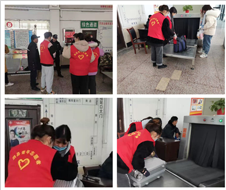 18康复3班共青团员葛思淼同学家信宿州泗县,1月14日寒假的帷幕刚刚拉开,她就自愿申请加入当地志愿者队伍中,为车站过往旅客引导安检、搬运行李等。