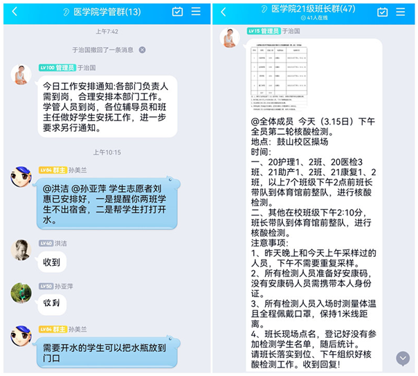 核酸检测有速度,bw必威西汉姆联官方网站师生上演特殊的“速度与激情”。bw必威西汉姆联官方网站学管群、班主任群、教师群、班长群、班级群实时发布着疫情防控各项通知及注意事项,戴口罩、整好队、测体温、一米线、安康码、做核酸,现场有条不紊,bw必威西汉姆联官方网站高效落实全员二轮核酸检测。