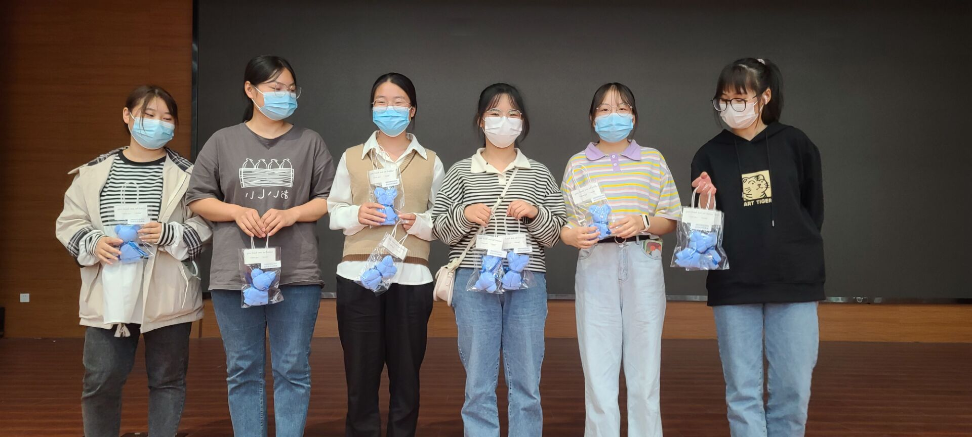 最后,我们将护理专业学姐们亲手制作的校庆伴手礼送给了新同学。