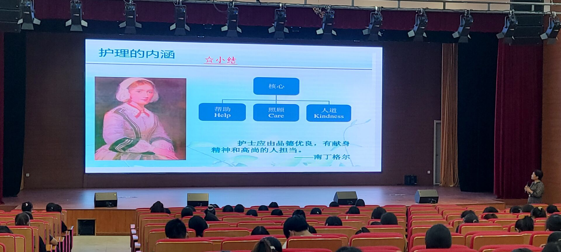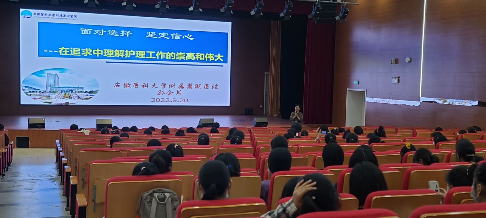 借着学校20周年校庆系列活动的契机,我们有幸请来了安徽医科大学附属巢湖医院副院长孙会芹给22级新生做了题为“面对选择,坚定信心--在追求中理解护理工作的崇高和伟大”的专业教育讲座。孙院长从提灯女神南丁格尔说起,给学生介绍了护理专业的发展历史和现阶段面临的挑战和机遇,同时也给新同学在校学习提出了具体的要求和期望,鼓励新同学扎实专业知识,打好专业基础;整场讲座娓娓道来,同学们表示收获满满。