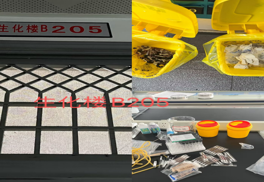 经过安全教育培训的学生们,以班级分组的方式对医学检验10间教学实验室进行安全检查和整改工作。代永沛针对在实验课留下的实验医疗垃圾分类上进行现场示教。