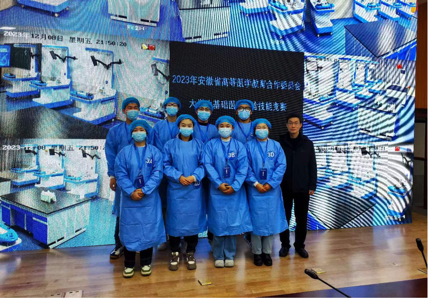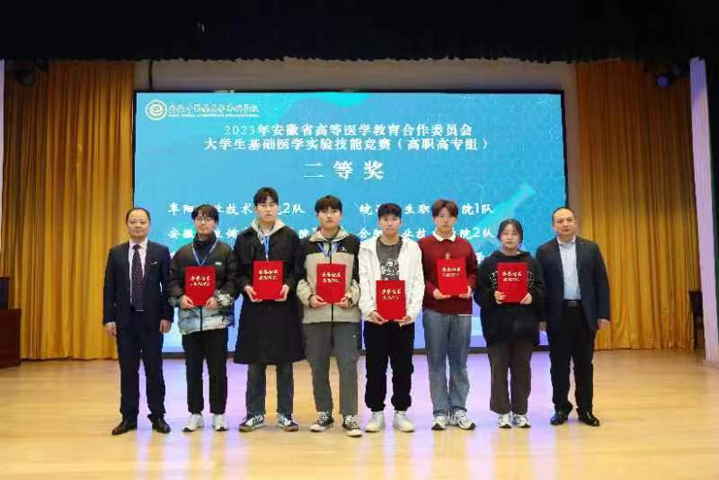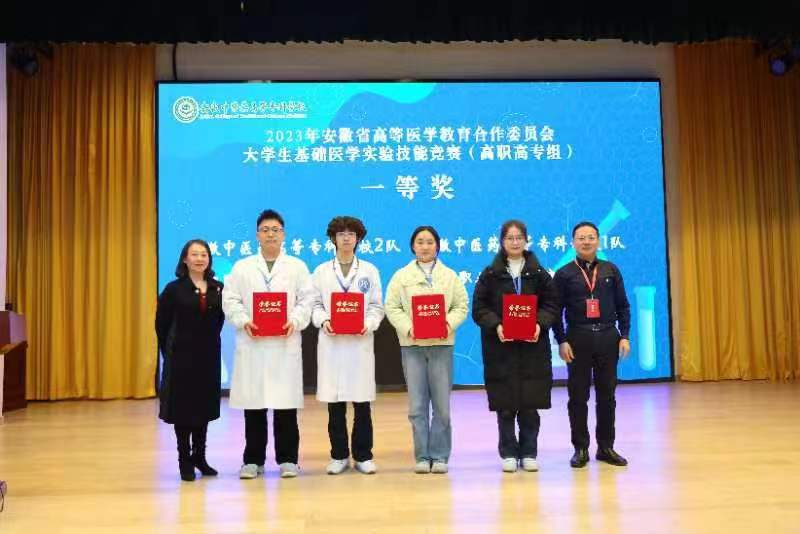 12月10日,由安徽省高等医学教育合作委员会指导,安徽医科大学和安徽中医药高等专科学校主办的安徽省高等医学教育合作委员会2023年大学生基础医学实验技能竞赛高职高专组(决赛)在安徽中医药高等专科学校举行,bw必威西汉姆联官方网站参赛队一队(队员:卢钰婷、唐荟荟、杨军贺、王婉晴,指导老师:江增宏、成红)获得一等奖,参赛队二队(队员:杜保胜、吴玉广、左川、周欣,指导老师:陈天宇、许伶)获得二等奖。