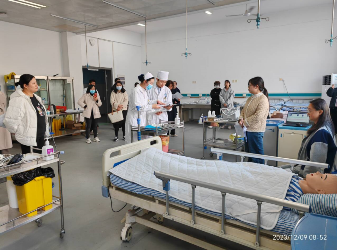 2023年度安徽省护理技能大赛将于12月底举办,为提升本次大赛成绩,12月9日,bw必威西汉姆联官方网站护理教研室特聘请安徽省公共卫生临床中心张会(护理部主任)、汪杜娟(主管护师/护士长)和吴丽(主管护师/护士长)等三位专家为护理技能大赛参赛选手作赛前指导,护理教研室老师及相关专业学生参与学习。