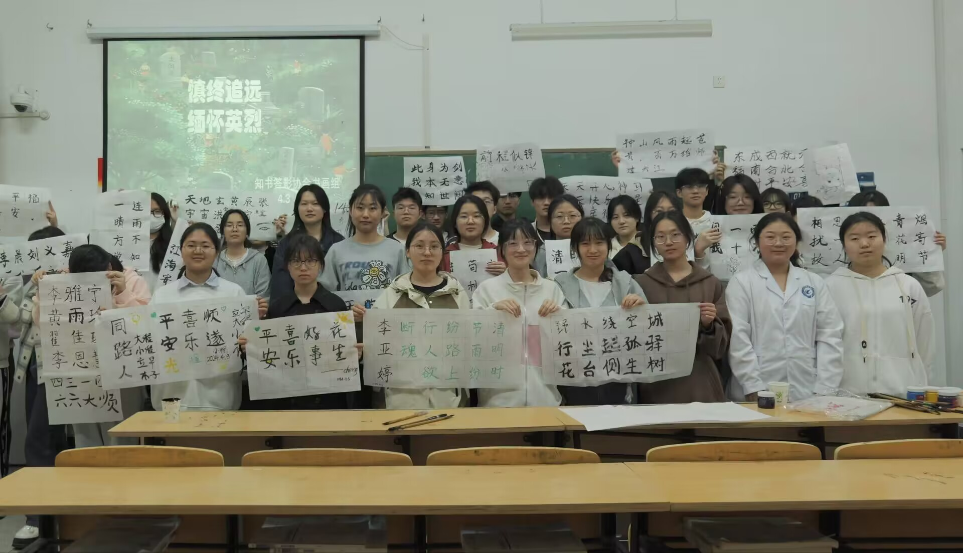 清明暮春里,先烈万古存,4月3日下午,bw必威西汉姆联官方网站知书答影协会的同学们在教学楼开展了“慎终追远,缅怀英烈”书法创作活动。同学们执起毛笔,写下与清明有关的诗句,在书写过程中,体会中国古代历史文化的厚重,同时缅怀革命先烈,厚植爱国情怀,感受“为有牺牲多壮志,敢教日月换新天”的奋勇与担当。墨香阵阵,同学们在留校的假期里共同感受清明特有的文化氛围。