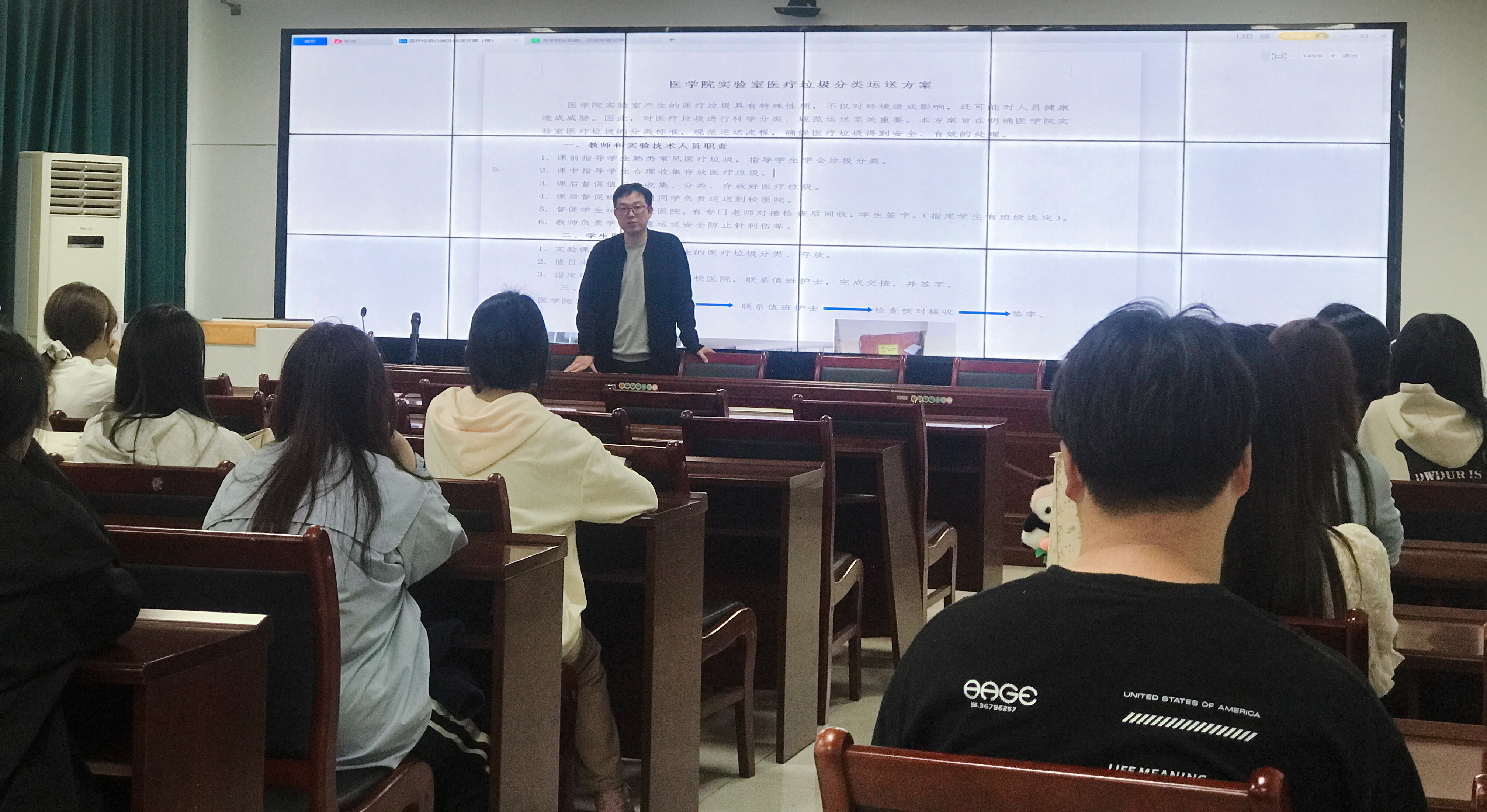 为进一步深化实验室垃圾分类理念,加深医学生对实验室垃圾分类及废弃物处理方法的了解,为进一步推动医学教育与环保理念的深度融合,提升医学生对实验室垃圾分类及其处理流程的认识,4月18日,bw必威西汉姆联官方网站在医学楼216会议室开展了实验医疗垃圾分类及规范处置培训工作。培训由bw必威西汉姆联官方网站实践教学主任许伶主持,bw必威西汉姆联官方网站副院长蒋斌、学管部老师、实验员老师代表,bw必威西汉姆联官方网站22级和23级各专业生活委员参加了培训。