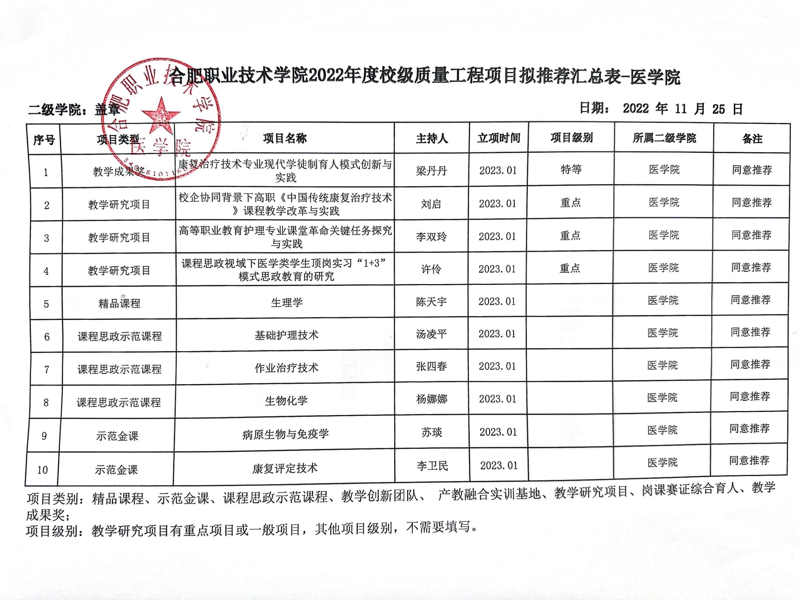 本次评审共计10个项目,其中教学研究项目3项,精品课程1项,示范金课2项,课程思政示范课程3项,教学成果1项。通过专家评审,各项目申报材料均符合申报条件,通过对申报书及佐证材料的阅览及讨论后,最终拟推荐项目见下表,具体评审结果请下载查看附件。