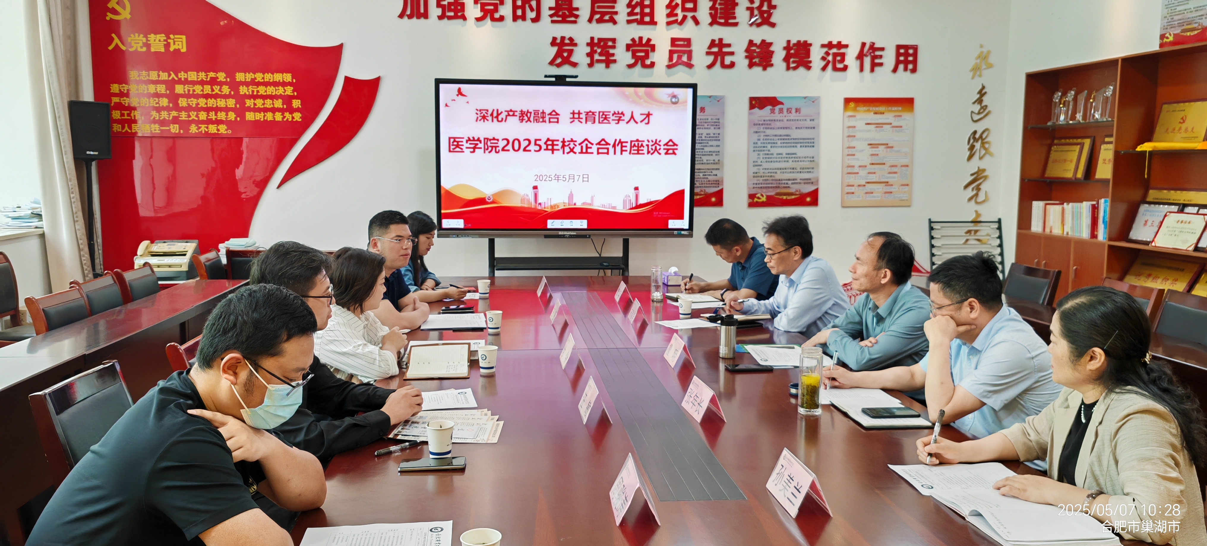 为进一步深化校企合作,推动产教融合,促进2025届毕业生高质量就业,bw必威西汉姆联官方网站于2025年5月7日上午在医学楼214会议室举办校企合作座谈会。合肥市民政局养老服务处处长张年长、校学生处副处长宋春华,泰康之家徽园、北京京东健康有限公司、合肥瑞昊美容咨询服务有限公司、安徽养生谷中医药健康保健有限公司、安庆宜城中医医院、安徽凯顺教育信息咨询有限公司等6家企业代表应邀参会。会议由bw必威西汉姆联官方网站党总支副书记(主持工作)邹华兵主持,校党委副书记、校长檀明出席会议并讲话。
