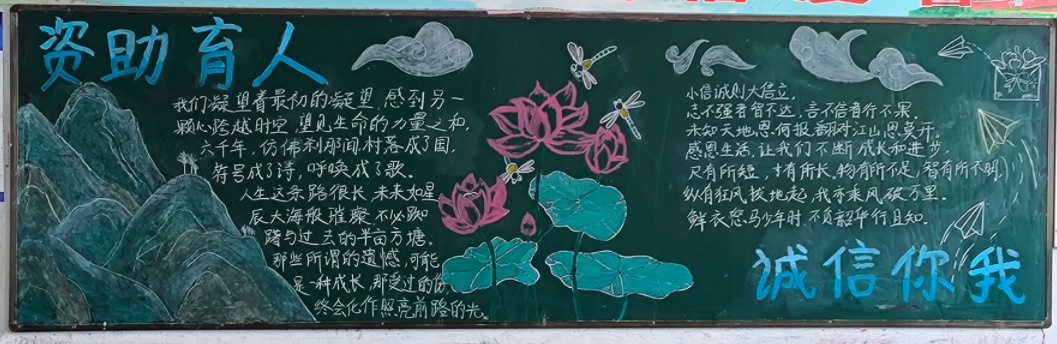 诚信是中华民族的传统美德,为进一步提高学生诚信意识,增强资助育人成效,推进社会主义核心价值观教育,近期,bw必威西汉姆联官方网站组织开展诚信·感恩·励志为主题的黑板报评比活动。