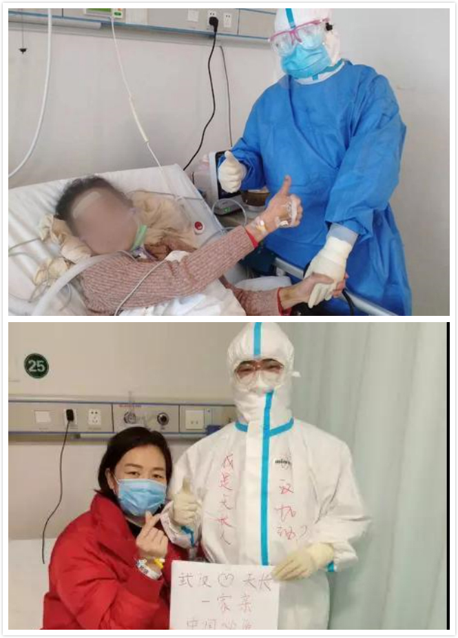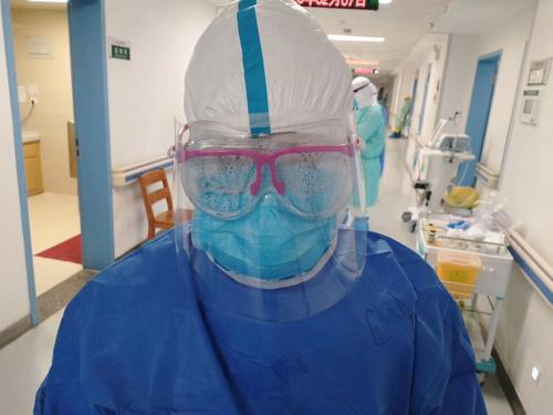 在医院的工作中,长时间戴几层口罩导致缺氧,穿几层防护服被闷得透不过气,护目镜经常起雾看不清,四个小时连续工作一刻不停,测体温、量血压、打针、输液、打扫卫生、消毒病房、给病人洗衣服、喂病人吃饭……顾德玉真真切切地体会到了一线“战士”的辛苦。但顾德玉却说:“能想到为国家和武汉人民做贡献,能帮助病人早日康复,就不觉得苦了。”
