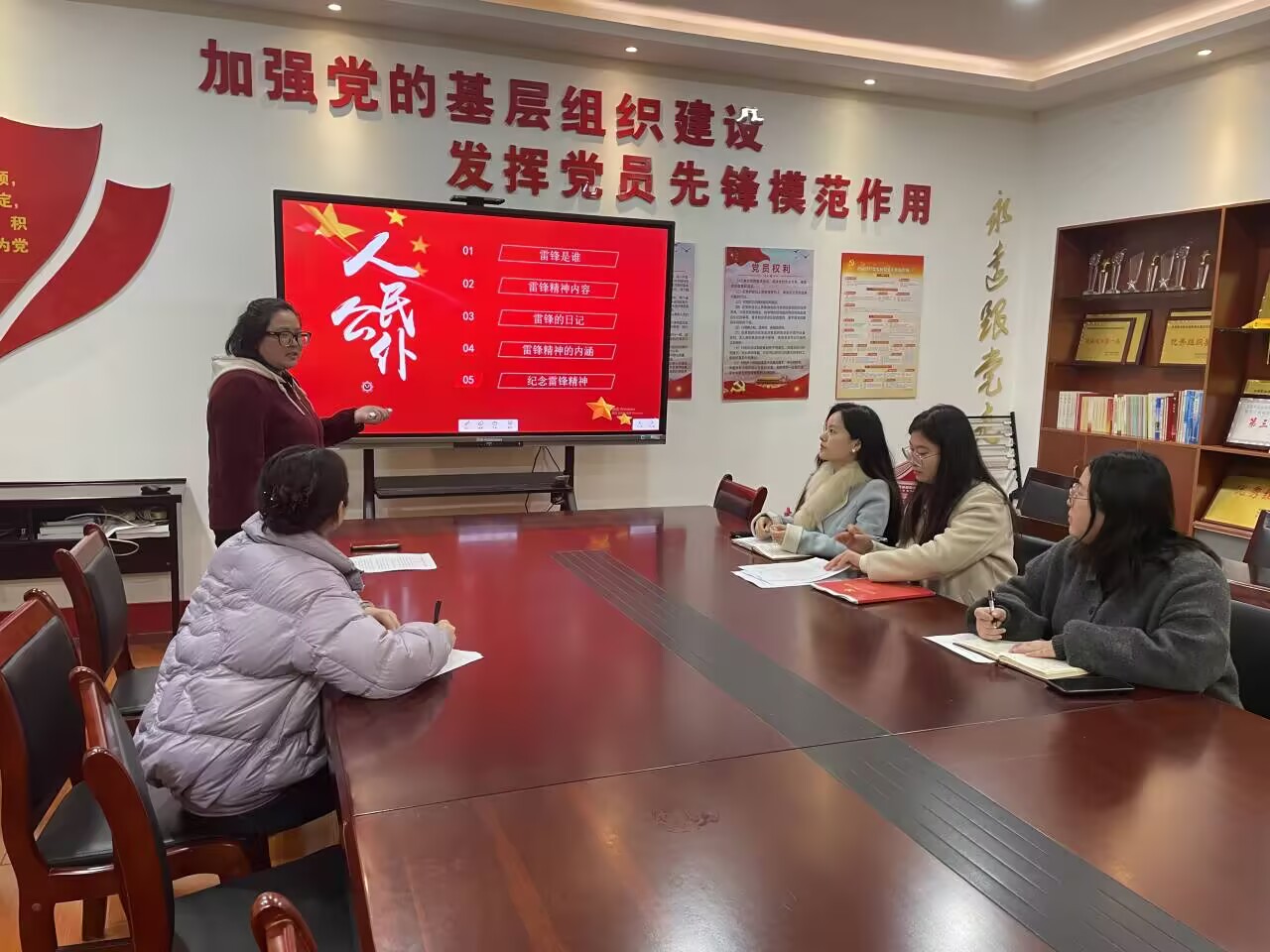 活动最后,支部党员梁春艳同志为大家带来了一堂生动的学习雷锋精神的主题党课。她从雷锋精神的内涵、时代价值以及如何在新时代背景下传承和弘扬雷锋精神等方面进行了深入讲解。梁春艳强调,要深刻把握雷锋精神的时代内涵,让雷锋精神在职业教育领域绽放新的光芒。