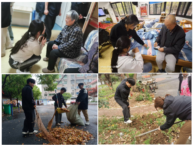 为弘扬中华民族敬老爱老传统美德,4月12日,bw必威西汉姆联官方网站第四党支部党员教师周璇带领学生志愿者团队,赴合肥市长者之家养老院开展"健康护航,情暖桑榆"主题志愿服务活动。活动涵盖健康监测、心理关怀、劳动实践三大模块,获得院方及老人一致好评。
