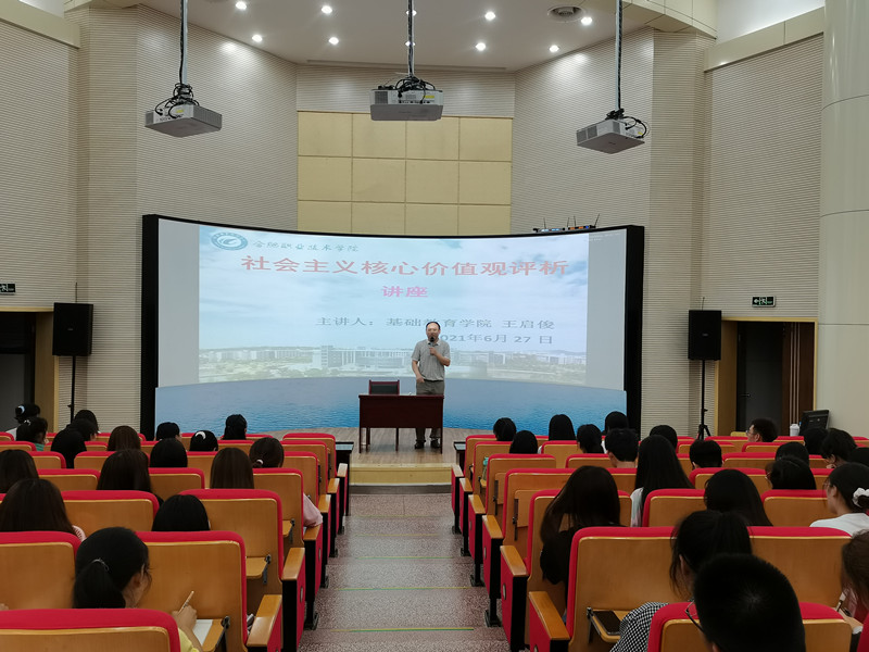 为进一步提升bw必威西汉姆联官方网站第四届入党积极分子的“思政”素养水准,提高入党积极分子对当代中国主流价值的认知,6月27日晚在图书馆二楼报告厅,bw必威西汉姆联官方网站邀请了基础教育学院王启俊副教授给在座224位入党积极分子讲授了关于《社会主义核心价值观评析》的讲座。