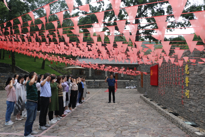“仙踪镇六衖地区是一片烈士鲜血浸染过的土地,这里是安徽省含山县第一支人民抗日武装——黄山抗日游击队的诞生之地……”在黄山游击队旧址,在解说员的讲解下,全体党员重温了那段艰苦的革命岁月。这是革命烈士战斗过的红色土地,大家一边认真聆听讲解员热情的讲解,一边观看旧址内的陈列展品,那些详细的文字资料、珍贵的照片留影、一件件见证革命历史的文物,使得革命先烈的光荣事迹更加生动鲜活,让同志们的心灵受到了震撼和洗礼。参观结束,在庄严肃穆的氛围中,大家来到党旗前整齐列队,重温入党誓词。