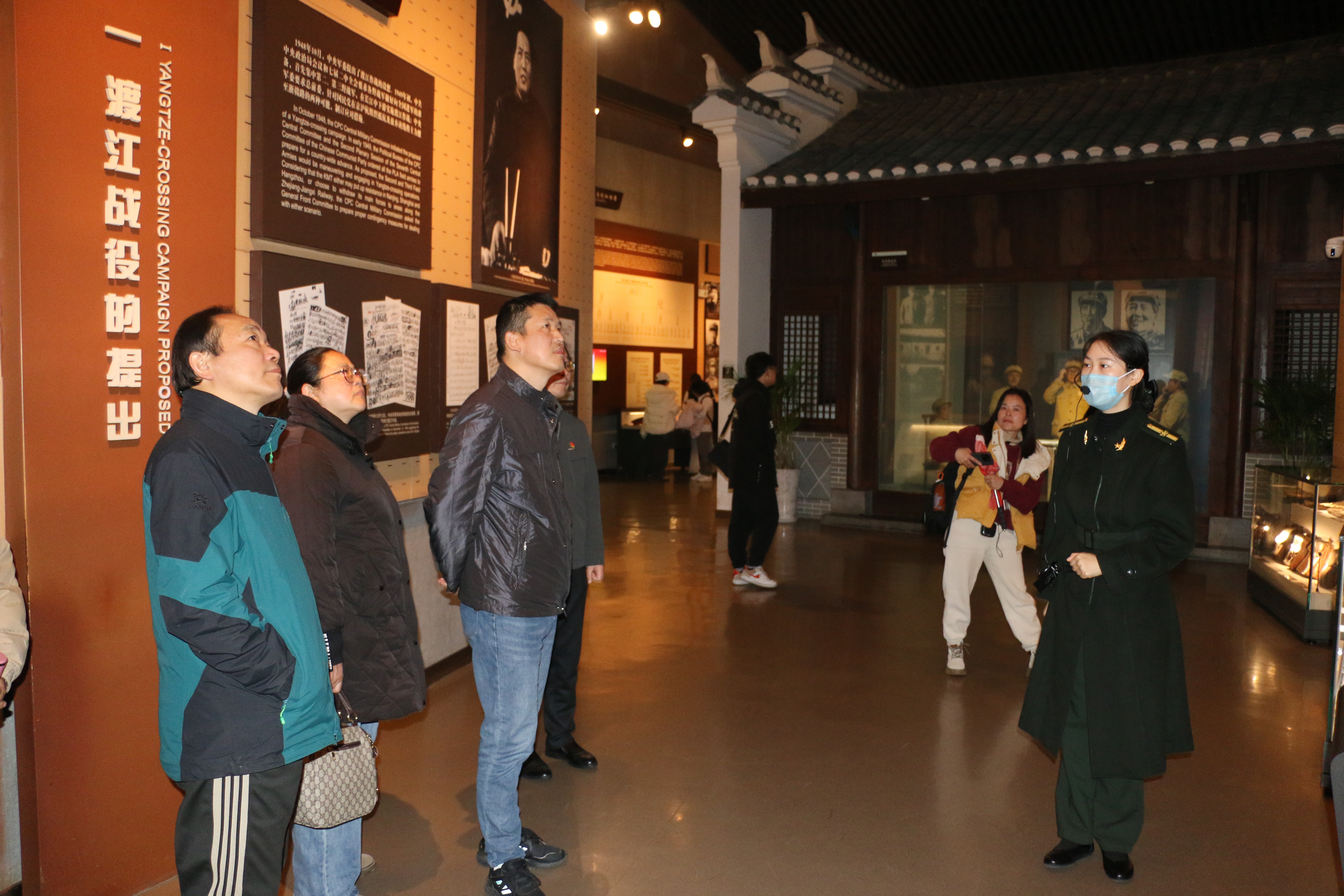 党员们来到渡江战役纪念馆,纪念馆内陈列着大量珍贵的历史文物和照片,生动再现了渡江战役的胜利是靠老百姓用小船划出来的艰苦过程和胜利取得的伟大意义。在讲解员的引导下,大家依次参观了“战前形势”“战役准备”“突破江防”“战役胜利”“人民支前”“英烈业绩”等展厅。在讲解员的细致解说下,大家了解到渡江战役是解放战争三大战役之一,也是中国人民解放军建军以来最具代表性的战役之一。在这场战役中,人民解放军克服了重重困难,成功实现了全国解放的战略目标。大家真切感悟了革命者前赴后继、英勇献身的革命豪情和“坚定信念、革命到底,军民团结、奋勇争先,攻坚克难、勇于牺牲”的渡江精神。