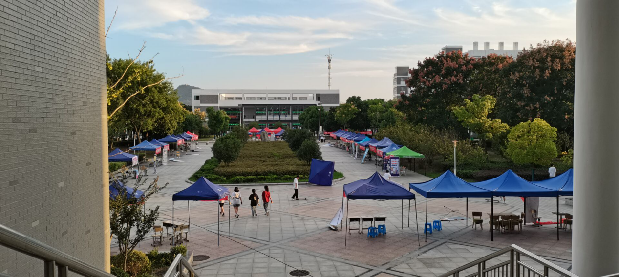 自万丰祥餐厅向北望去,在长达百米的长廊的两侧,各社团小组正在紧锣密鼓的开展纳新活动,通过海报、横幅、作品展等形式向往来的大一新生们展示各社团的特色。优秀作品、动感音乐吸引了众多学生的广泛关注和积极参与。在社团成员的细心讲解和耐心引导下,前来报名的新生纷纷选择了自己感兴趣的社团。