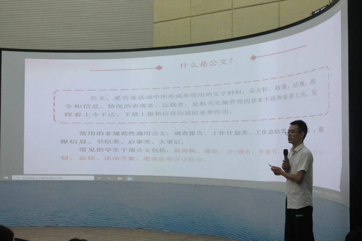 此次培训增加了同学们对公文写作重要性的认识,提升了大家的写作能力,为大家今后的学习、工作乃至走向社会都起到较好的引导作用。