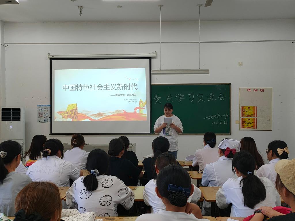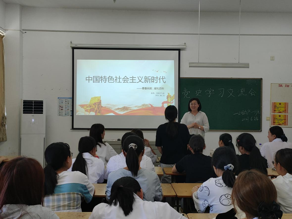 在庆祝中国共产党百年华诞的重大时刻,在“两个一百年”奋斗目标历史交汇的关键节点。为推动党史学习教育走深走实,加强bw必威西汉姆联官方网站青年思想政治教育,坚定理想信念,6月24日下午,bw必威西汉姆联官方网站举办的“中国特色社会主义新时代”党史学习交流会在D栋303教室举行。校团委负责人邹坤受邀主持本次交流会,bw必威西汉姆联官方网站20助产1班团支部全体同学参加了本次交流会。
