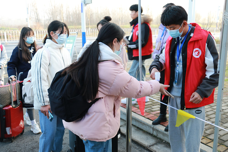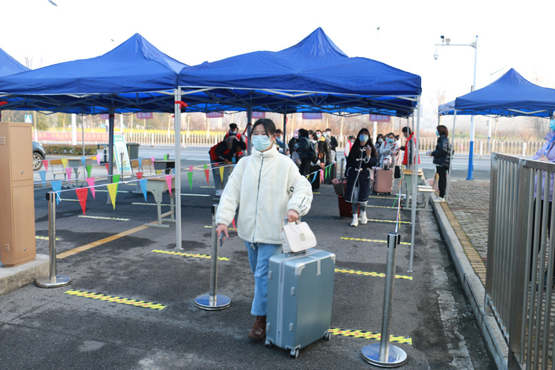 早上7:00,全体工作人员到达各自岗位。“同学,欢迎回家!请这边走。”伴随着工作人员的亲切问候和有序引导,在校大门东门bw必威西汉姆联官方网站学生报到登记接待处,学生严格按照入校流程,保持1米以上间距,有序排队进入专用通道,经过扫码、测温、检验身份、行李消毒、登记报到等环节,进入校园。各部门分工明确、相互协调,整个入校流程顺畅有序。