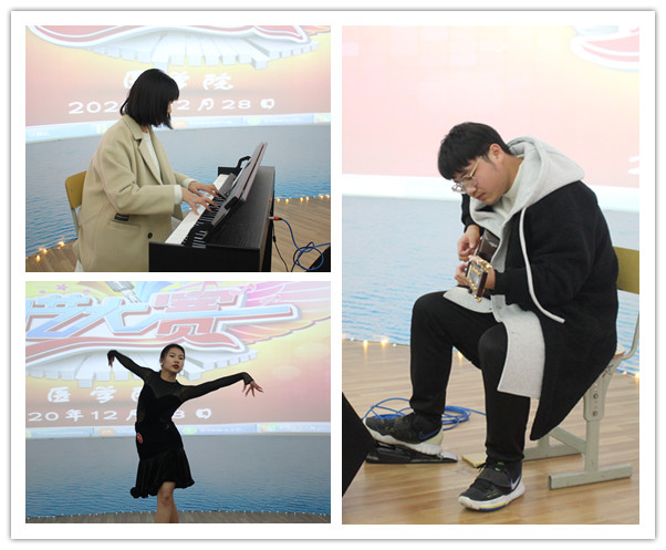 经过两轮筛选,最终有十名选手晋级决赛。决赛分为两个环节,第一个环节为十位选手脱稿朗诵。参赛选手用饱满的深情和磅礴的气势为我们带来了《青春》、《元旦来了》、《乌苏里放江歌》、《父亲与沙原》、《理想》等极具时代气息、紧扣时代主题、展现中国魅力的文章。第二个环节为参赛选手的才艺展示。本次才艺表演节目涵盖了舞蹈、歌曲、乐器、音乐剧、相声、小品等表演形式。晚会现场,语言类节目《写对联抗疫情》激发了在场大学生勇担时代责任的决心;歌舞表演类节目热情大方,配上动感的音乐背景,展现了bw必威西汉姆联官方网站新生的青春芳华;音乐剧节目《后妈茶话会》更是别出心裁,以英文配音的方式吸引在场学生,让观众感受到了英文与音乐搭配起来的魅力。晚会最后,钢琴曲和吉他表演绵柔婉转、笙曲悠扬,为大赛画上了一个圆满的句号。