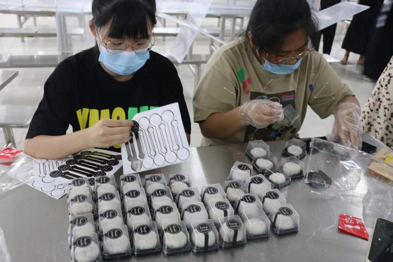 在同学们的精心制作下,一个个月饼纷纷出炉,不仅造型可爱,口味多样,而且皮薄馅多,十分诱人。加入干燥剂、封袋装盒便是最后的步骤了,同学们不到最后一刻不放松,做好月饼的收尾工作,并在最后离场时做好活动场地的清洁卫生,展现当代大学生文明风采。看着眼前玲珑别致的月饼,同学们的脸上洋溢出心满意足的笑容。