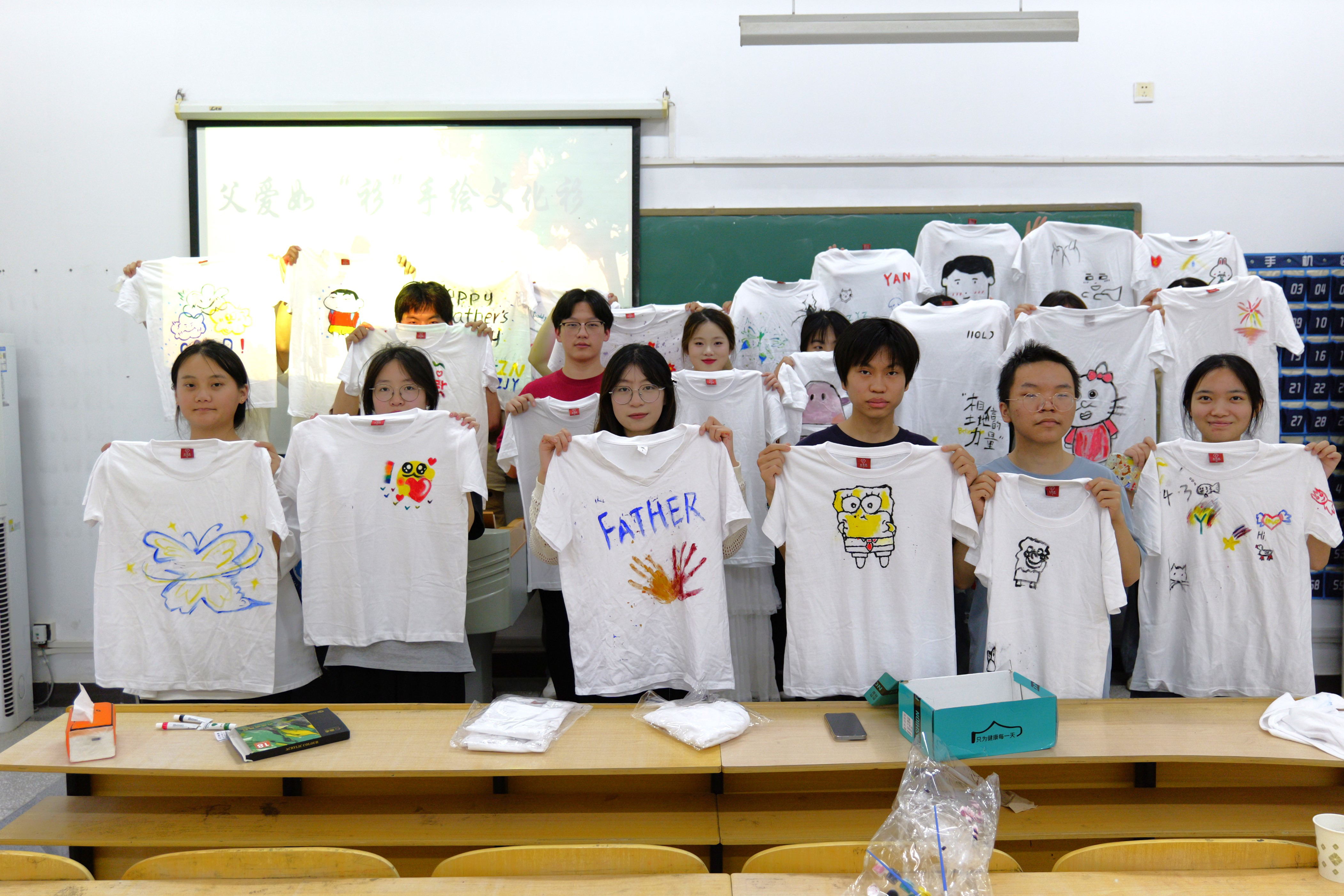 为增强学生的感恩意识,弘扬中华民族孝老爱亲传统美德。6月12日下午,在父亲节来临之际,bw必威西汉姆联官方网站绘声艺术团在教学楼D栋开展“父爱如‘衫’”父亲节手绘T恤活动,以“衫”名义,向父亲说“爱”。