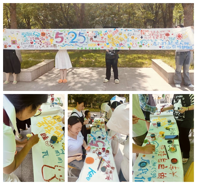 在全国大学生心理健康日来临之际,bw必威西汉姆联官方网站心理辅导站于5月21日中午在鼓山校区一食堂门前广场成功举办“我爱我·绘心声”主题心理健康活动。活动以画笔为媒,以色彩言心,通过艺术疗愈的创新形式,“以色彩之名,与自我对话”,吸引百余名医学生执起画笔,在手绘长卷上完成了一场别样的心灵SPA。