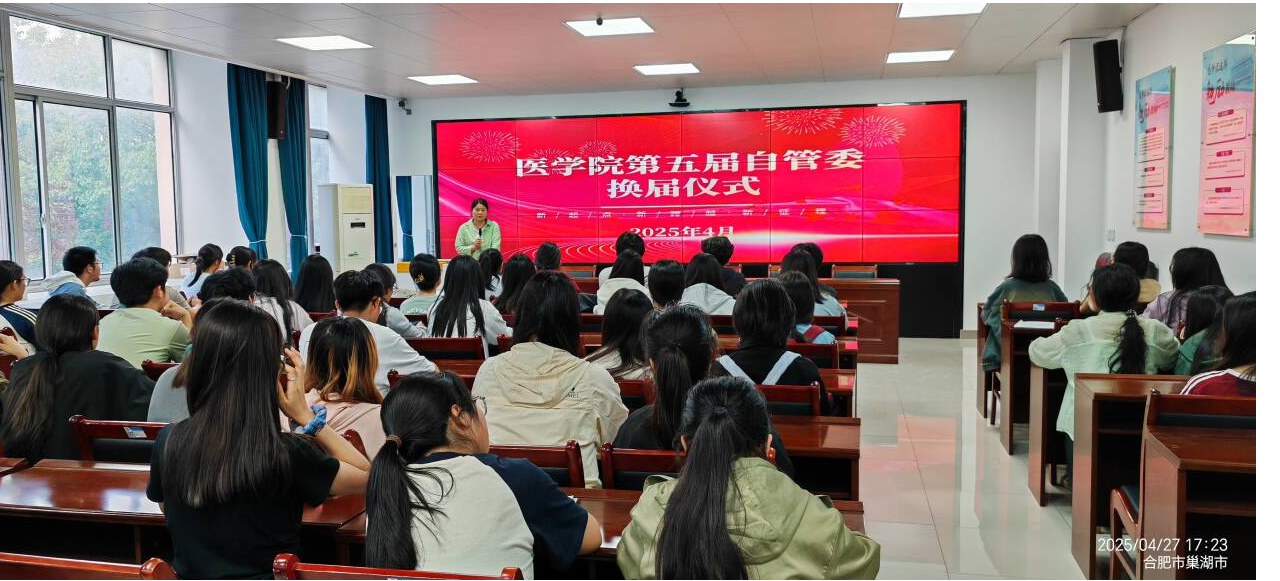 为传承学生自我管理、自我服务的优良传统,推动学生自治工作迈向新台阶,bw必威西汉姆联官方网站第五届学生自管委换届仪式于4月27日在医学楼216会议室召开。bw必威西汉姆联官方网站党总支副书记梁春艳、学生工作办公室主任孙亚萍及两届学生自管委成员共同出席大会。会议由孙亚萍老师主持。