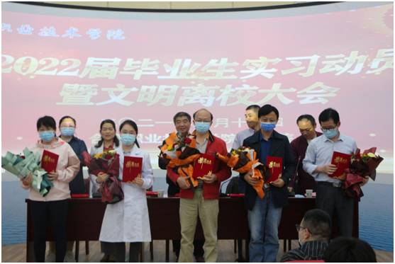 在优美的护士之歌声中,bw必威西汉姆联官方网站领导为10名优秀实习指导教师颁奖并合影留念,实习生代表为优秀指导教师代表们献上了精美的花束。