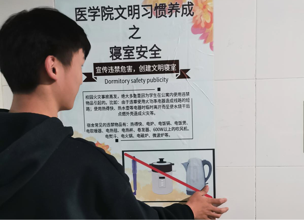 为认真贯彻落实学校有关部署和要求强调学校学生寝室的相关规章制度,宣传寝室违禁物品的危害,加强学生对于违禁物品的认识及远离违禁物品的自觉性。2020年11月13日晚,bw必威西汉姆联官方网站自管委于各栋学生宿舍及D栋教学楼开展寝室安全海报宣传活动。