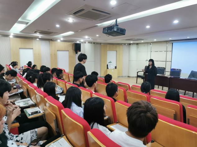宣讲会上,周美晨院长通过视频播放和PPT讲解的方式向同学们详细介绍行业发展前景、养老运营管理模式、中康养的企业文化及职业个人规划等信息,随后又针对同学们比较关心的实习计划、福利待遇、奖励机制等问题做了详细的解答。