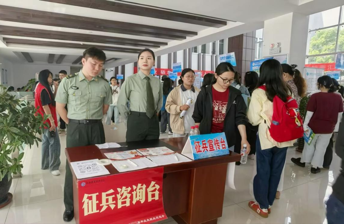 为深入贯彻落实新时代强军目标,鼓励大学生积极参军入伍,提升兵员征集质量,为国防和军队现代化建设输送高素质医学人才,57日下午,bw必威西汉姆联官方网站学工办在2025年春季校园招聘双选会现场设立应征入伍咨询台,开展征兵政策宣传活动。