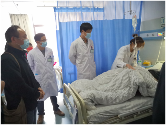 会后,院校双方人员共同前往工作现场开展实习教学检查工作,先后观看了外一科和消化内科临床教学查房、康复科治疗大厅、影像科CT室、检验科检验大厅等,检查科室教学相关资料记录归档情况,看望慰问带教老师与同学,召开实习生座谈会,听取师生意见建议。
